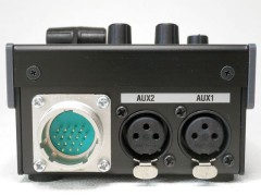 ヘッドフォンモニター音声はL/R INに加え、AUX1,2 INをセンター定位でミックスします。単独トークバックなどに使用されます。AUX1 INはXLRとメインI/Oコネクターに割り当てられており、どちらを使用するか底面SWで切り替えます(出荷時はメインI/Oコネクター側です)。AUX2 INはXLRのみ。 |
